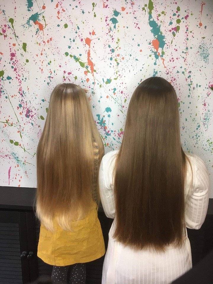 It’s fair to say that a LOT of hair was donated to the Little Princess Trust by Emma & Isla during their hair cut at Bliss Hair Salon in Nottingham. Just look at the difference below…..